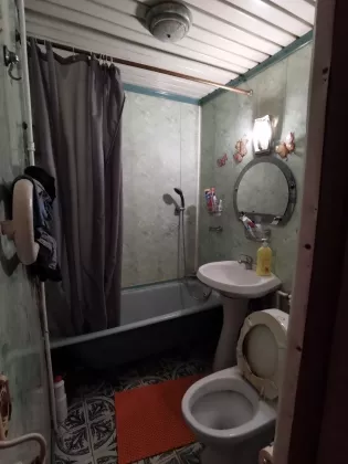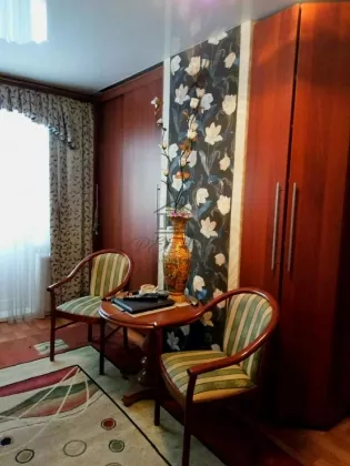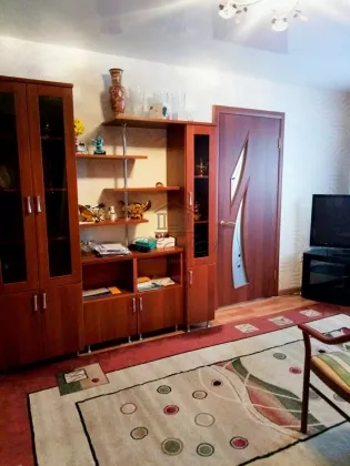 Общая площадь, без учета балкона, 45 кв.м., жилая 31 кв. м, кухня 6 кв.м., санузел совместный, балкон с выходом из гостиной. Комнаты смежные окна выходят на юго-восточную сторону улицы. Не угловая, очень сухая, тёплая и уютная. Без протечек и плесени. Объект с косметическим ремонтом, полностью меблирован. Можно заехать и жить!